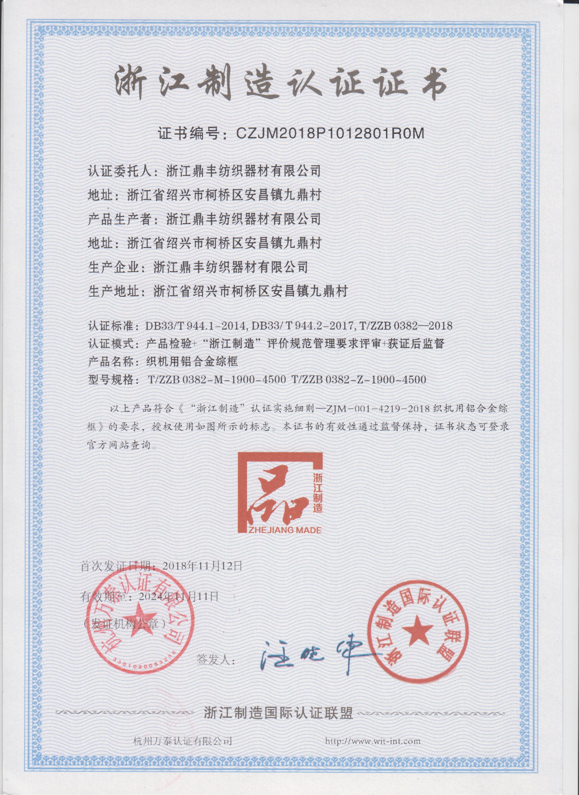 公司現(xiàn)有固定資產(chǎn)6000余萬(wàn)元,員工300余人,現(xiàn)具有年產(chǎn)噴氣異型筘12萬(wàn)米,劍桿筘32萬(wàn)米,噴水筘5萬(wàn)米,綜框20萬(wàn)片,鋼片綜2億片,停經(jīng)片1.5億片, 織軸1.2萬(wàn)套的生產(chǎn)能力。公司“越泉”商標(biāo)被評(píng)為“中國(guó)馳名商標(biāo)”。公司通過(guò)ISO9001 :2015國(guó)際質(zhì)量體系認(rèn)證,ISO14001:2015國(guó)際環(huán)境管理體系認(rèn)證,ISO45001:2018國(guó)際職業(yè)健康安全管理體系認(rèn)證,噴氣織機(jī)用鋼筘和織機(jī)用鋁合金綜框獲得“浙江制造”品牌認(rèn)證,公司擁有自營(yíng)進(jìn)出口權(quán),產(chǎn)品暢銷全國(guó)并遠(yuǎn)銷印度、巴基斯坦、土耳其、埃及、哥倫比亞、意大利等國(guó)家和地區(qū)。